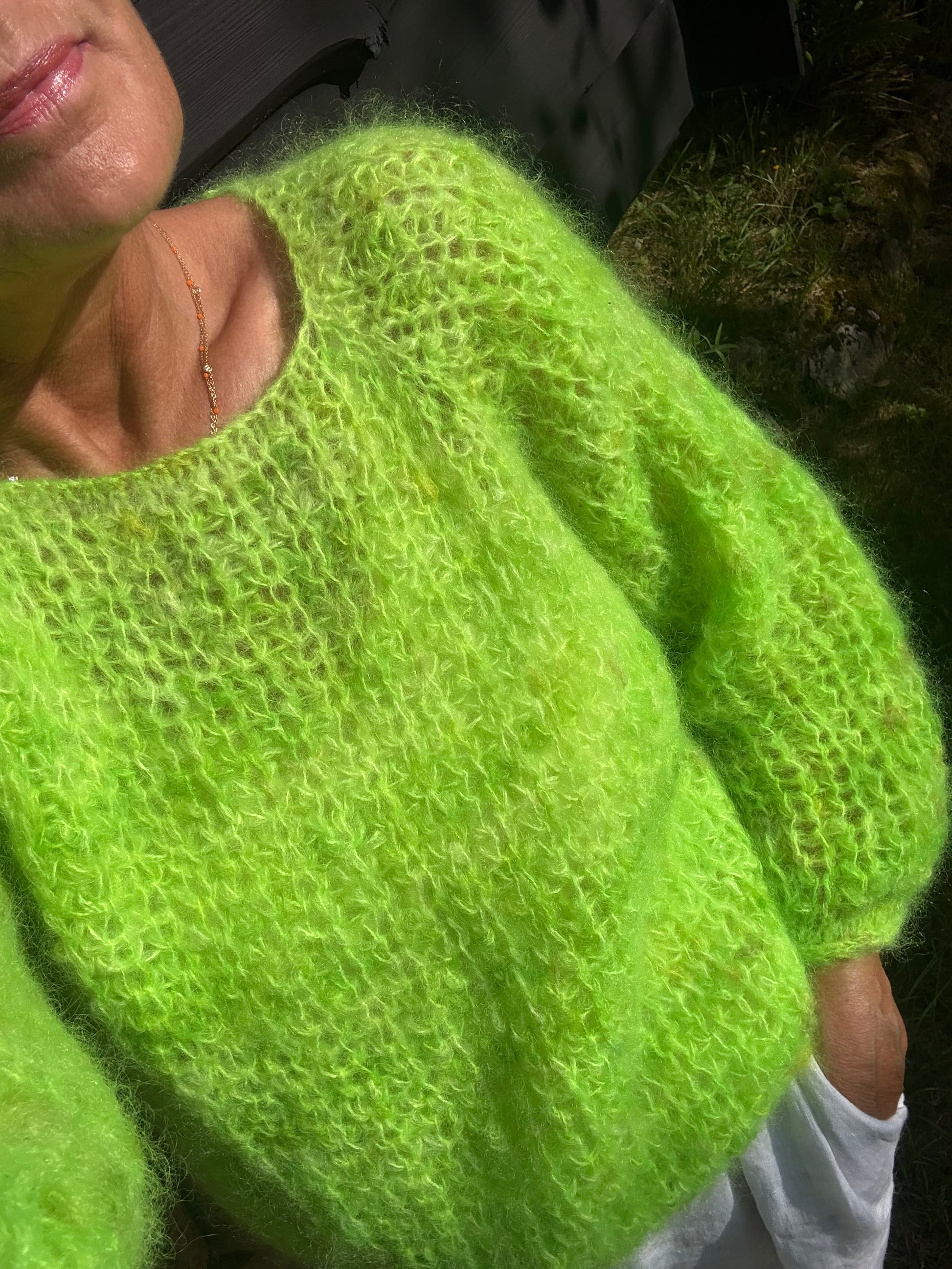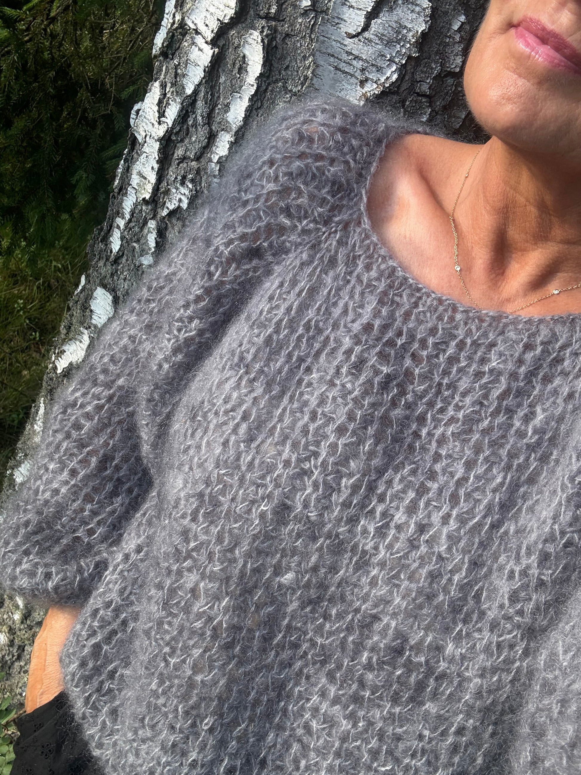 Knitted top down using raglan increases, hence, the length is easily adjusted while