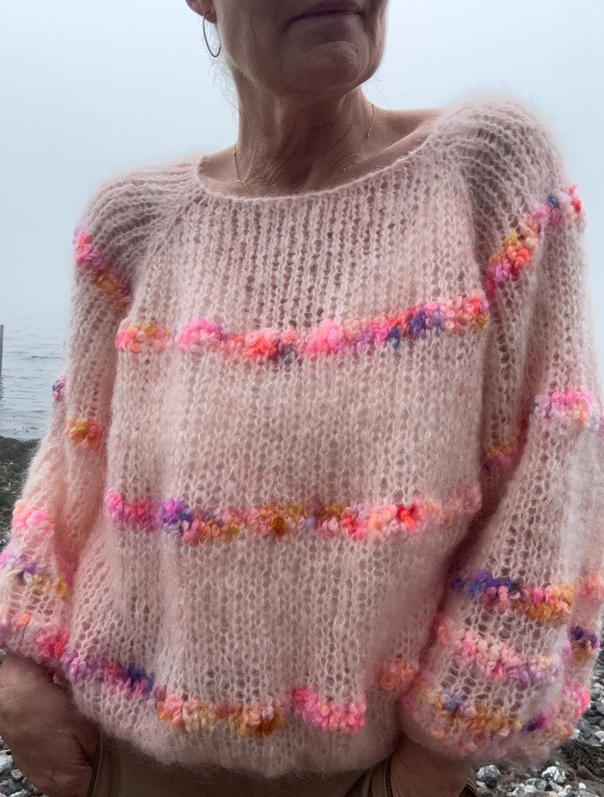 Lovely oversize sweater with chunky mohair and stripes in contrasting bouclé yarn.