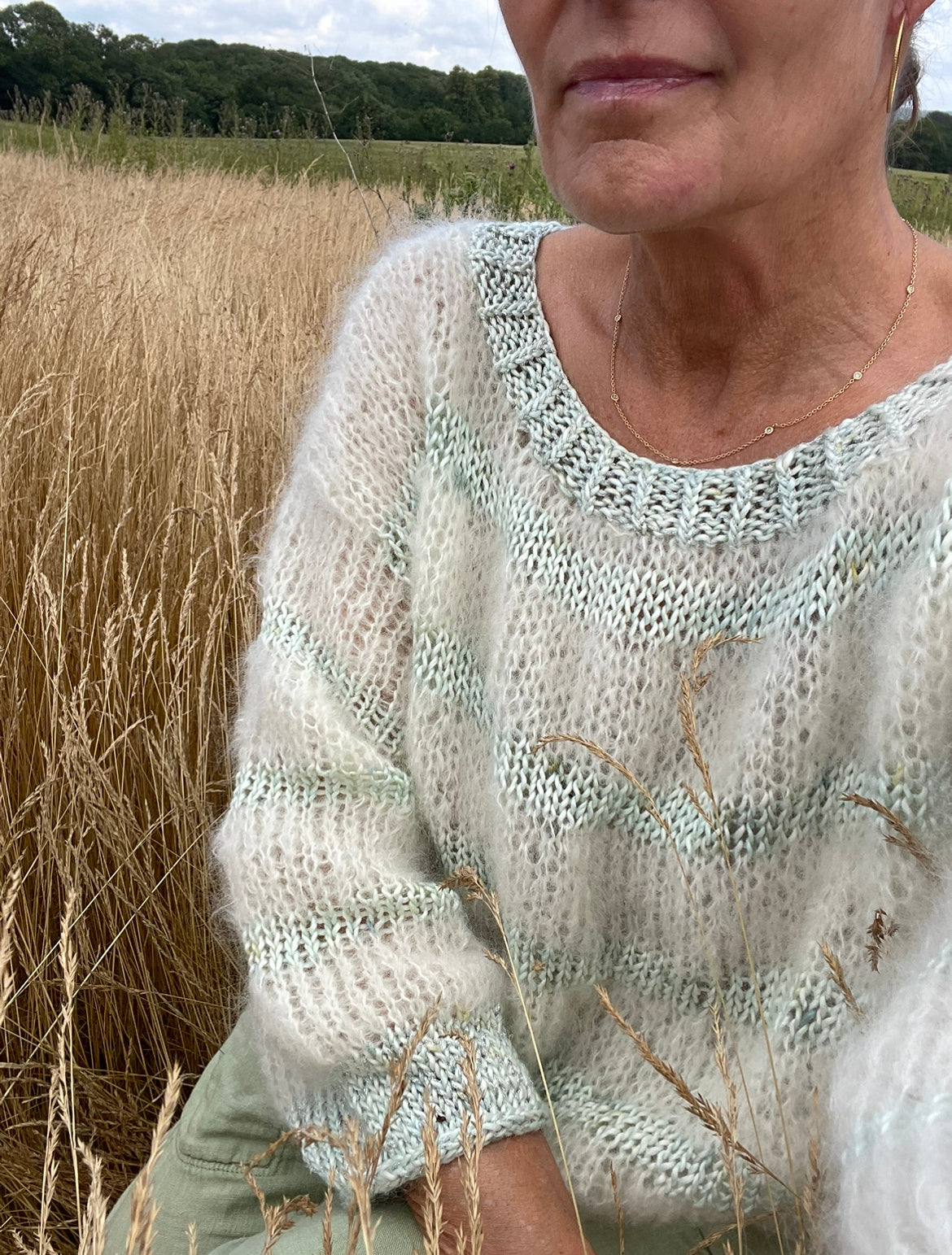 A beautiful combination of mohair, pima cotton, and a touch of silver.