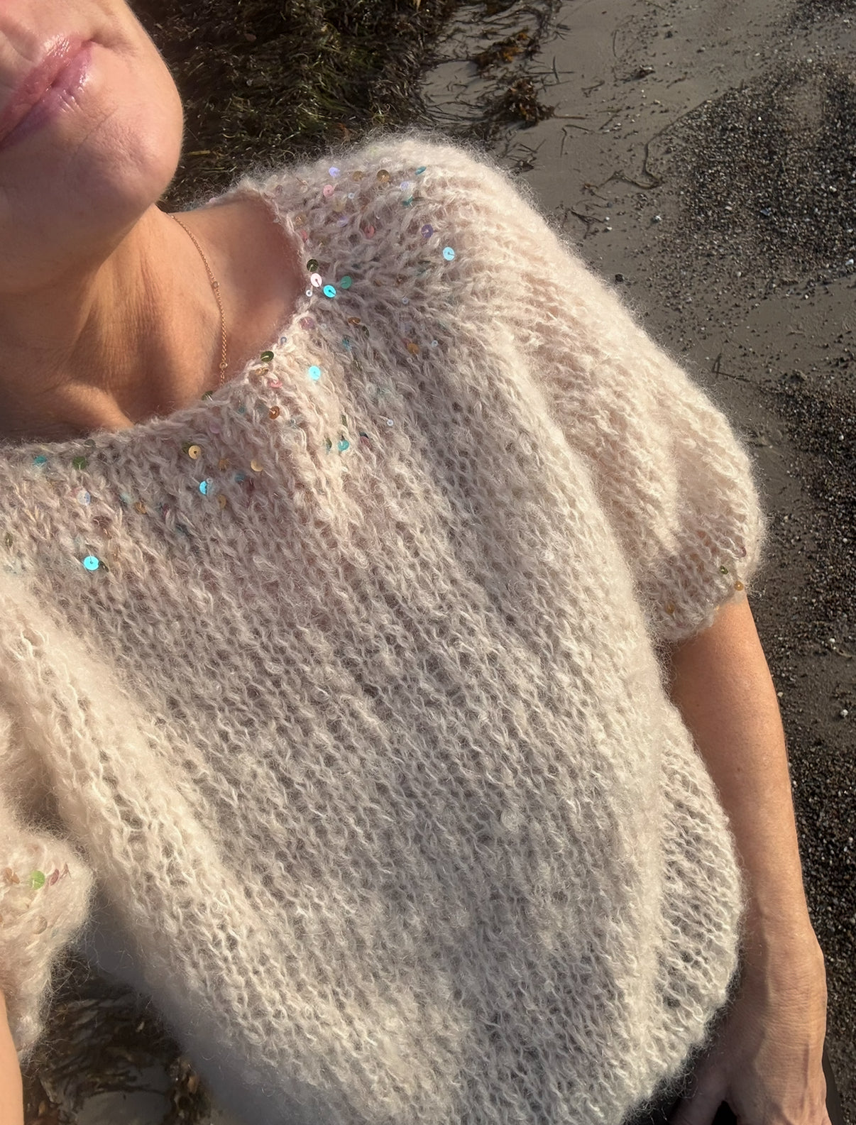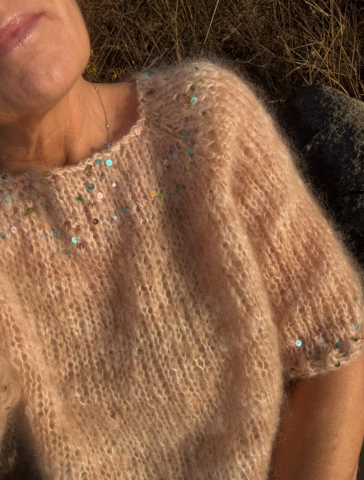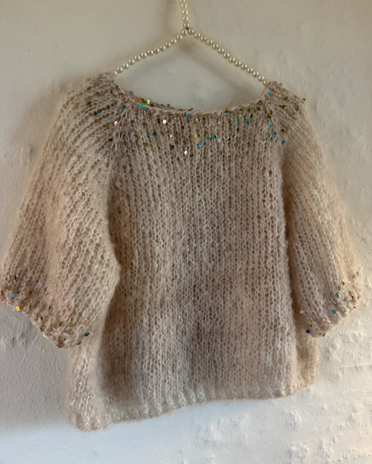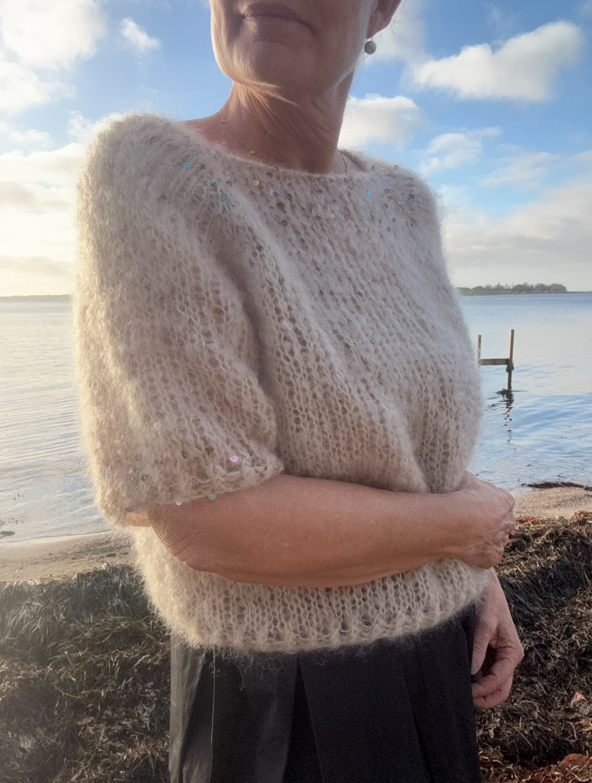 Foto 2: ”Tyk Mohair” fv. 22. Pailletgarn fv. 11.